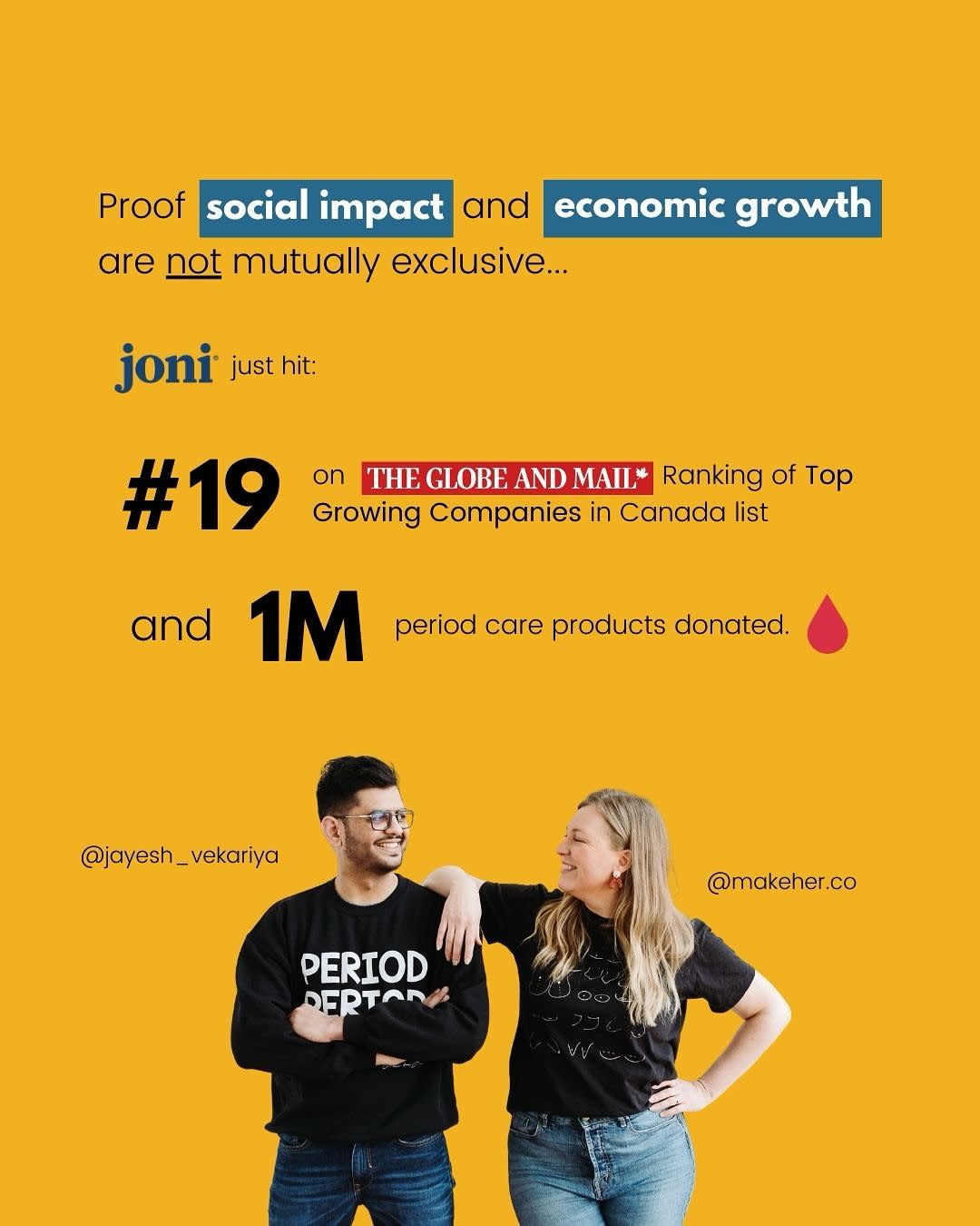 Two milestones, one moment: joni is officially ranked #19 on the Globe and Mail's Canada’s Top Growing Companies of 2025 list, and they just celebrated 1,000,000 products donated. 🌱✨